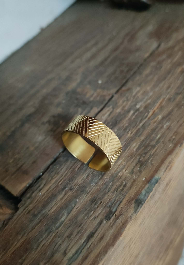 Anneau gravé d'une succession de triangles.