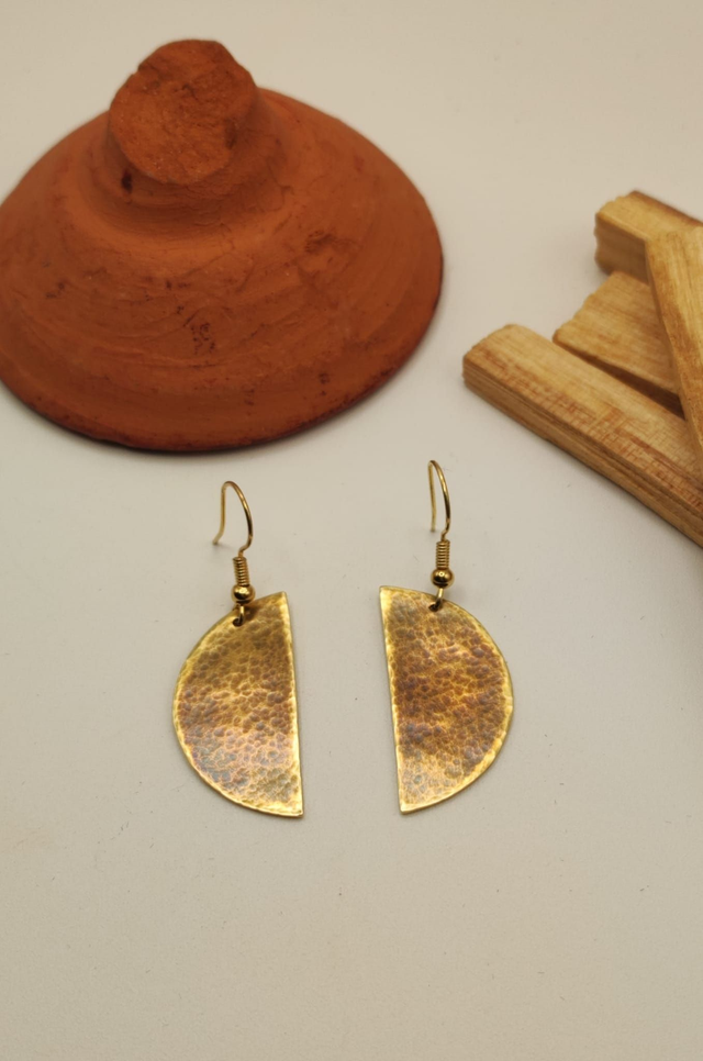 Boucles d'oreilles en laiton brut martelé et patiné.