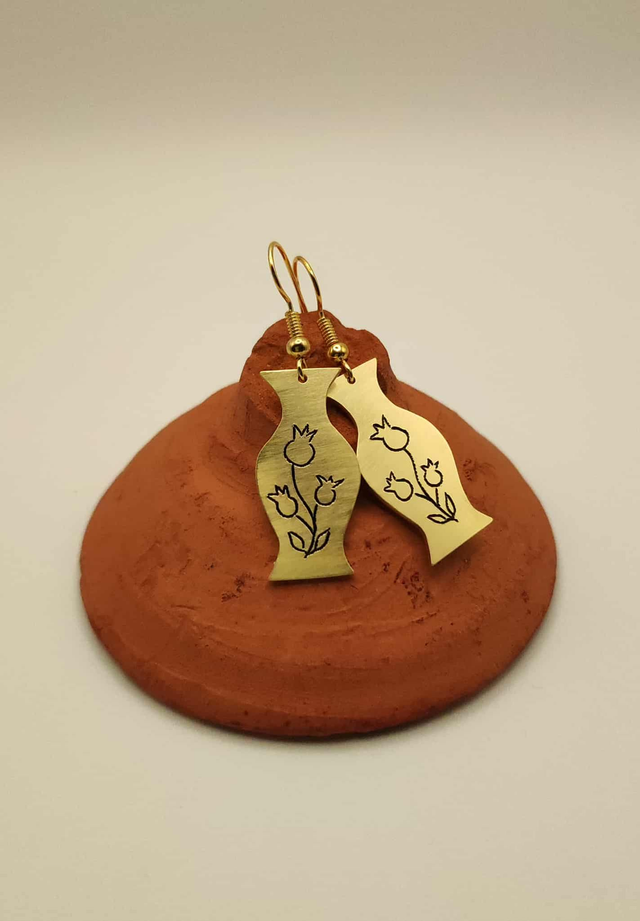 En laiton brut inspirées par l'art persan : la grenade représente la fertilité, la vie et la prospérité.