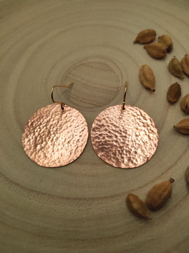 Le cuivre a naturellement une teinte rosé/orangé. C’est un métal qui vit et va donc évoluer avec une oxydation naturelle qui lui donne un charme rappelant les bijoux anciens.