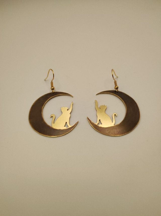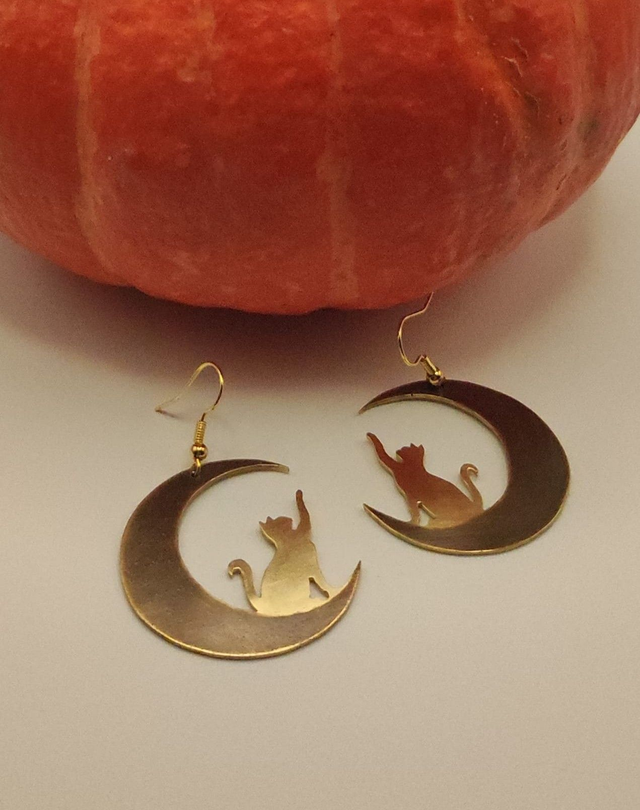 Comment ne pas craquer pour ces boucles d'oreilles d'un petit chat sur un croissant de lune ?