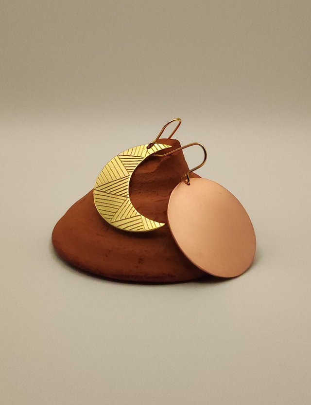 Rencontre du soleil cuivré et du croissant de lune en laiton gravé.